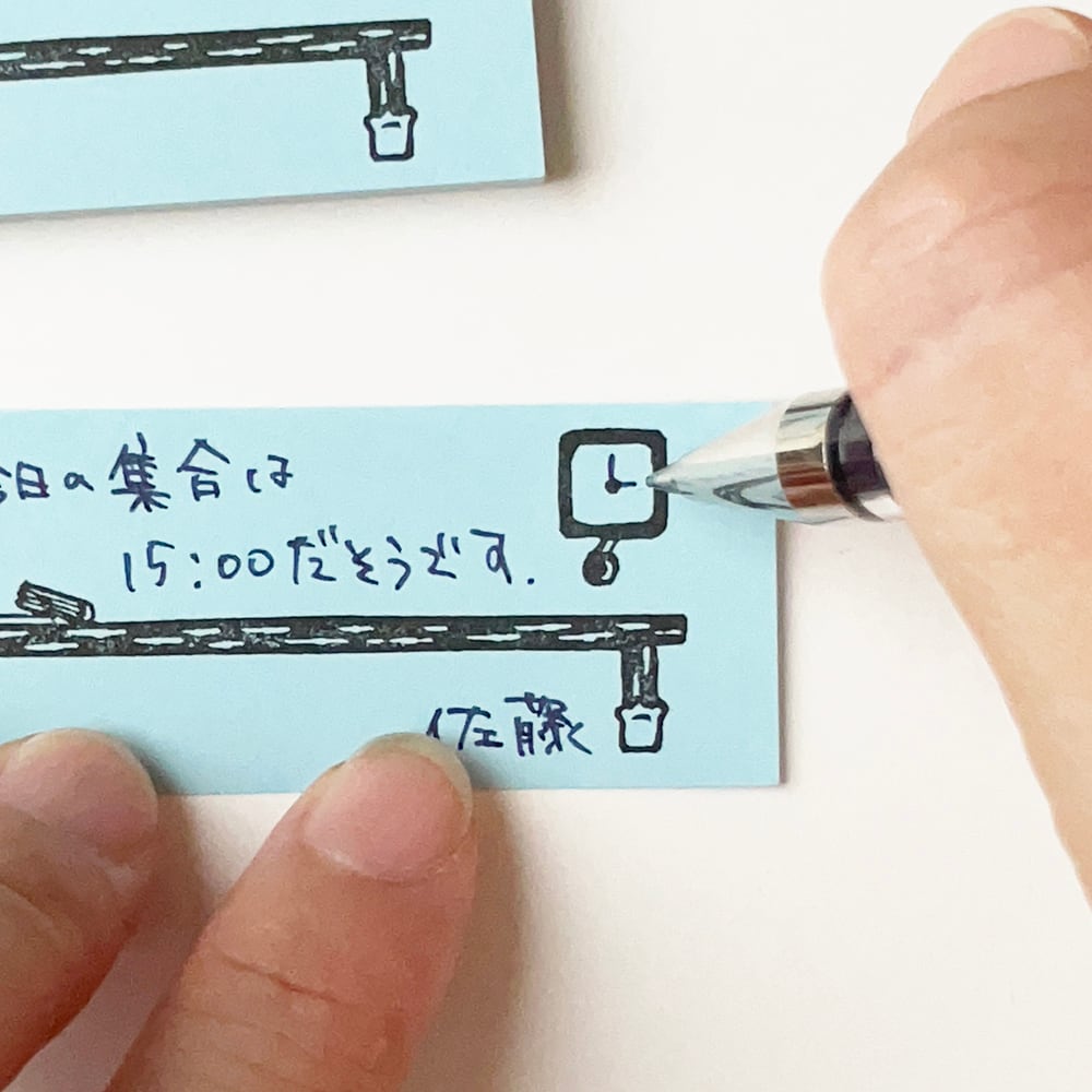 一般的な2.5×7.5cmの付箋にピッタリ収まるサイズで、日常の手書きコメントやメモ書きがより印象深いものに。