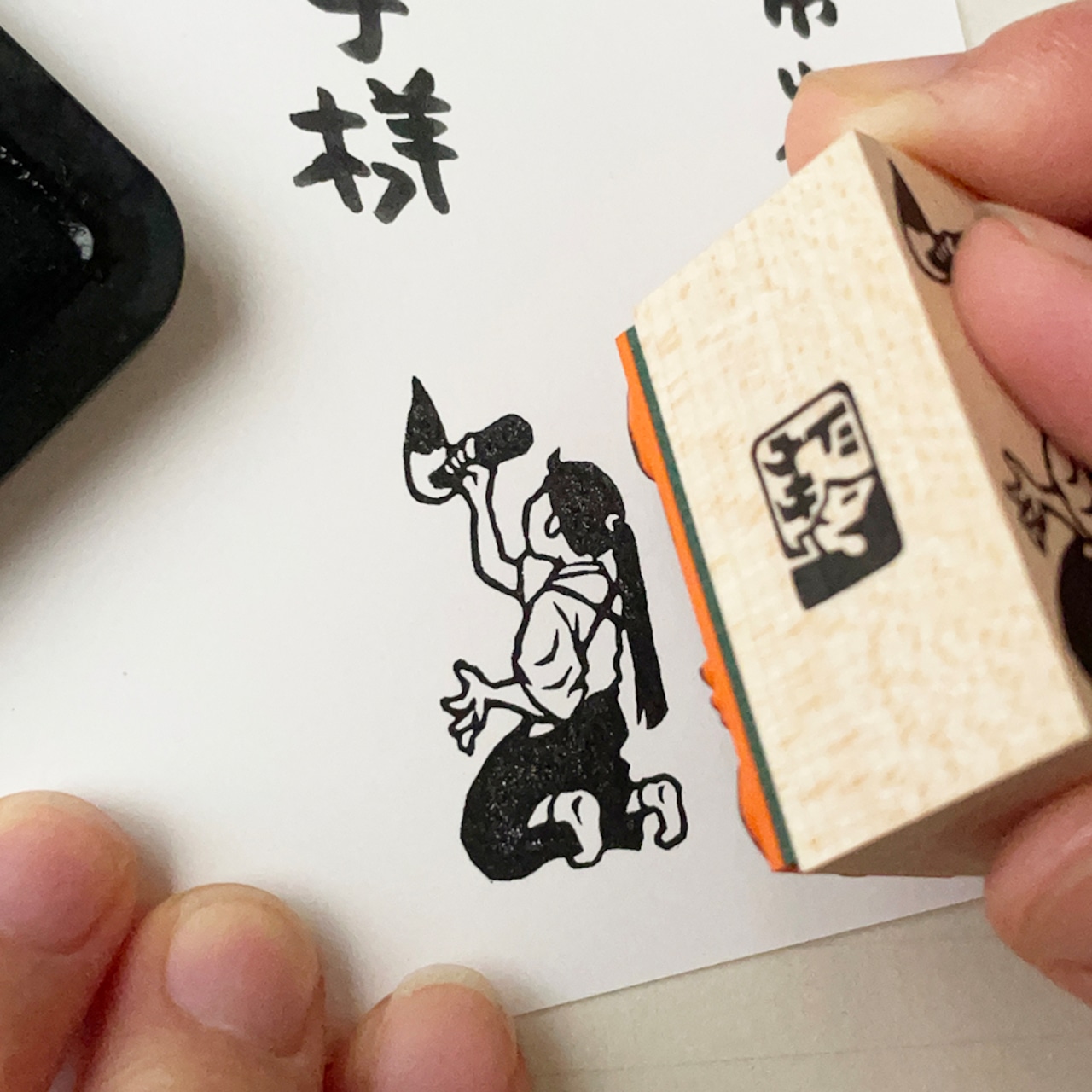 手彫りのゴム版画を元にしているので、印影から彫刻刀独特の風合いを感じていただけると思います。